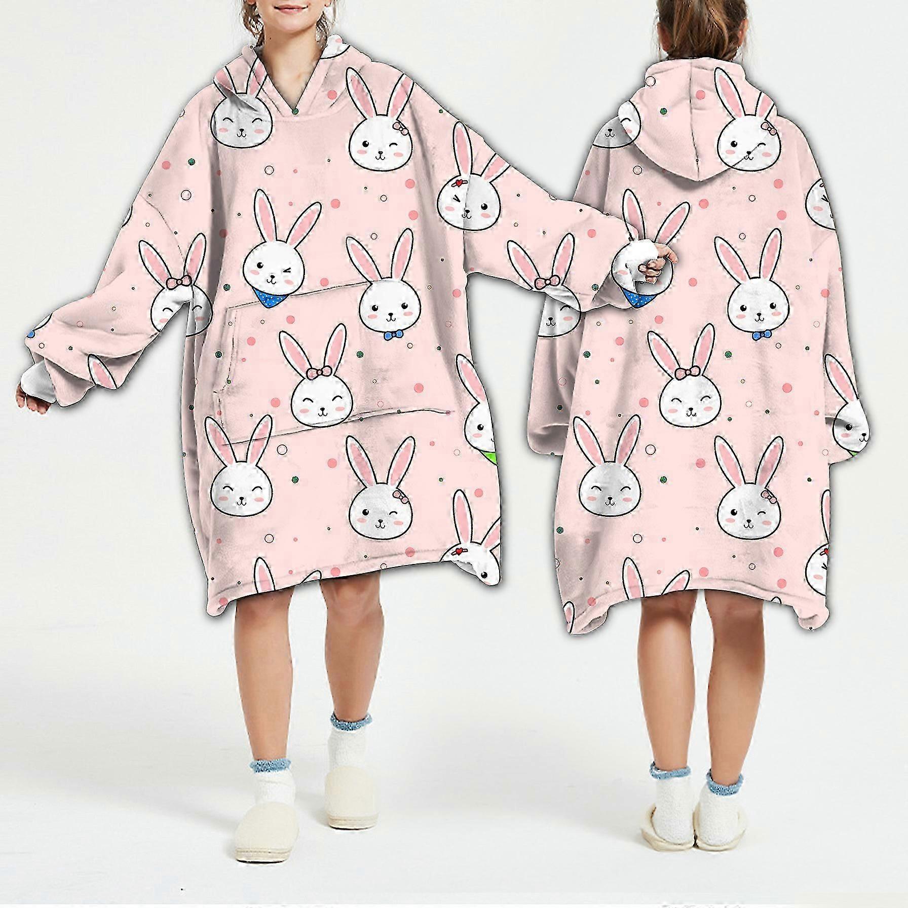 Cute Cartoon Pig Pattern Wearable Blanket Hoodie for Women Men Flannel Blankets Hooded Blanket