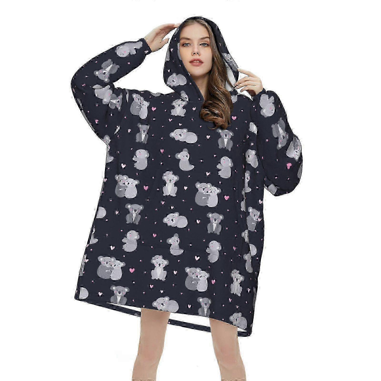 Cute Sloth on Sleeping Pattern Wearable Blanket Hoodie for Women Men Flannel Blankets Hooded Blanket