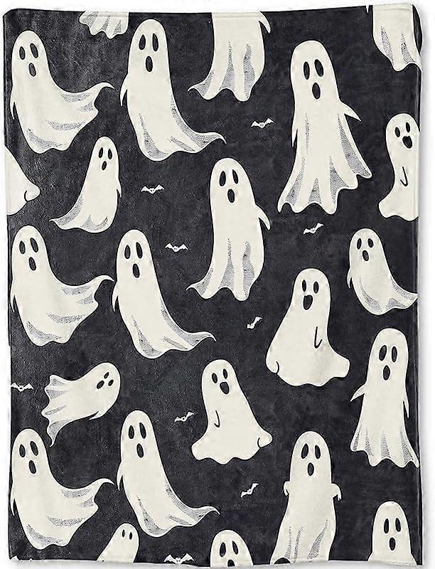 Witch Cat & Pumpkin Flannel Blanket - Bat Spooky Gothic Throw, compatible with Halloween decor, Ultra Soft Warm Lightweight for Couch Bedroom