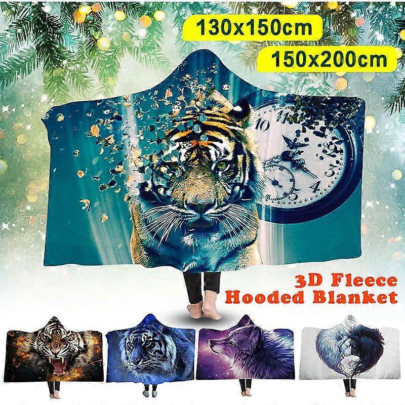Winter Blanket Flannel High Plush Wearable Hooded 2 Layers 130 * 150 Purple Wolf