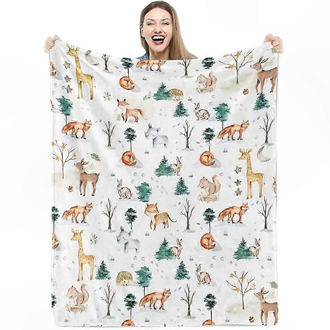 Soft Fleece Kids Blanket with Woodland Animals, Cozy Nordic Safari Design for Boys and Girls, 100 x 130cm Throw Wrap