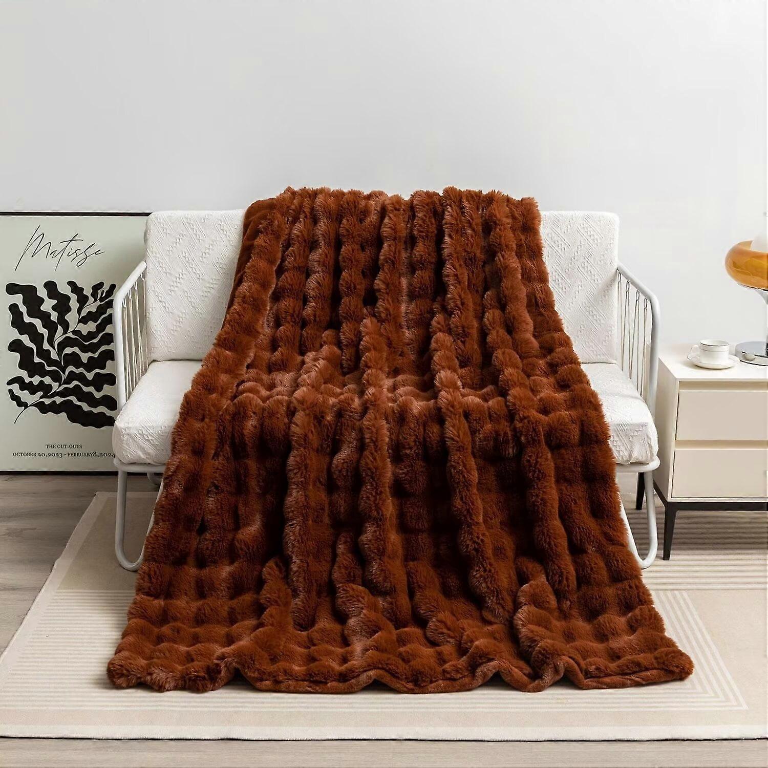 Luxury Fuzzy Faux Fur Queen Blanket, Soft Warm Thick Plush Throw for Couch Bed Chair Sofa, Grey 90" x 90", Compatible with Home Decor