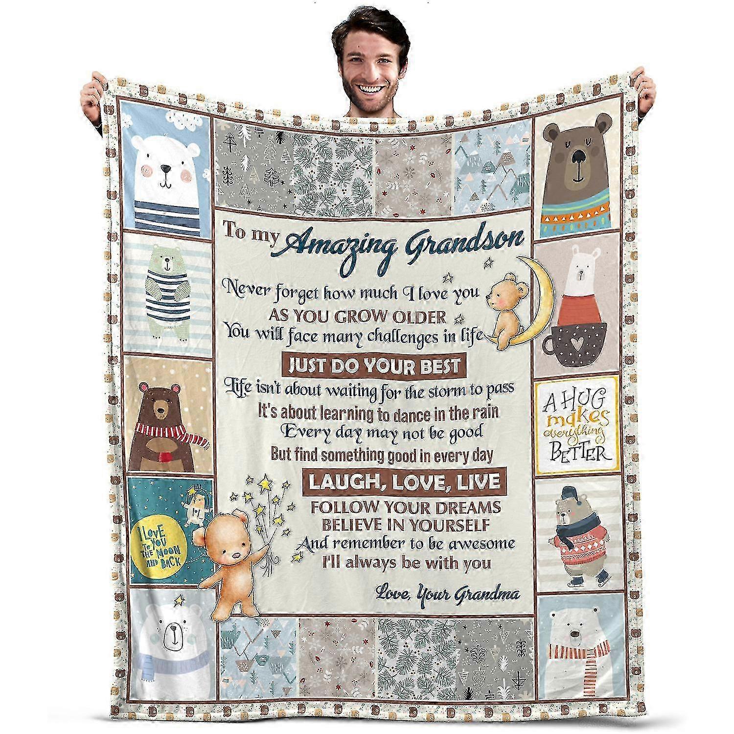 Oasisdream Lightweight and Smooth Blanket for Grandson with Bear and Moon Print