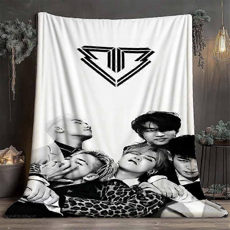 BIGBANG 5-Member K-Pop Themed Blanket - Iconic Logo & Member Portraits (, T.O.P, Taeyang, Daesung, Seungri) - All-Season-AZXCM45