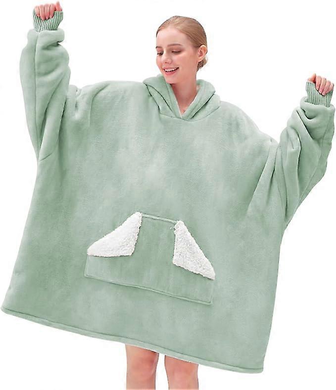 Wearable Blanket Hoodie, Oversized Sherpa Fleece Sweatshirt Blanket with Giant Hood Pockets and Sleeves for Adults, Warm and Cozy Gray Hooded Blanket