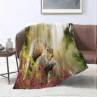 flannel Blankets,Squirrel Eats Nuts Floral Flowers,Throws for Sofa Fluffy Blanket Bed Throw f Bedroom,Couch,Bedroom Accessories 72x104in