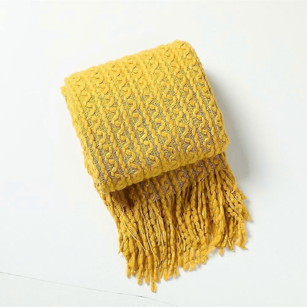 Bohemian Knitted Blankets for Couch, Soft Cozy Solid Color Braided Blankets and Throws for Bed, Bohemian Knitted Decorative Blanket with Tassels