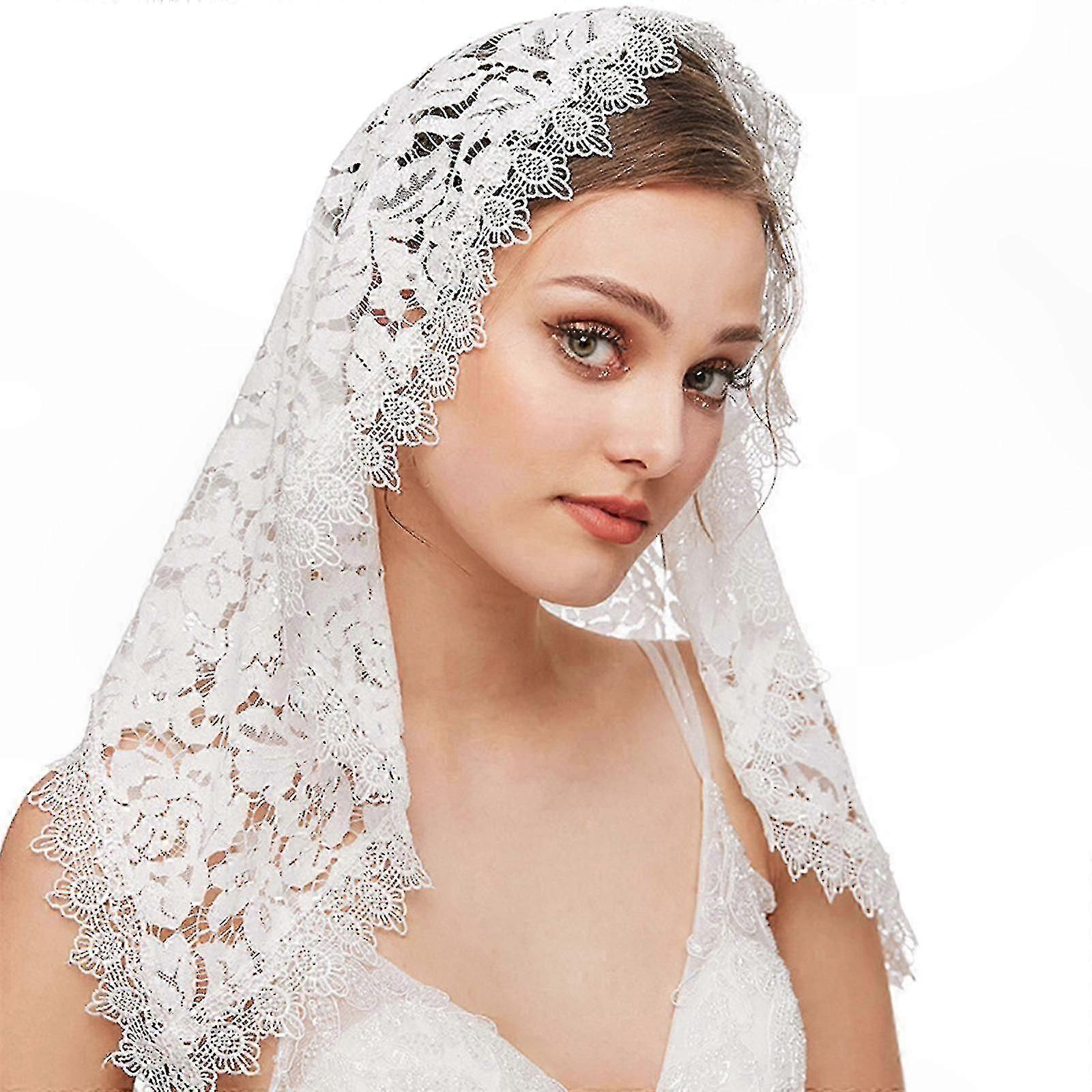 Floral Lace Head Covering for Special Ocns Short Scarf Religious Accessory