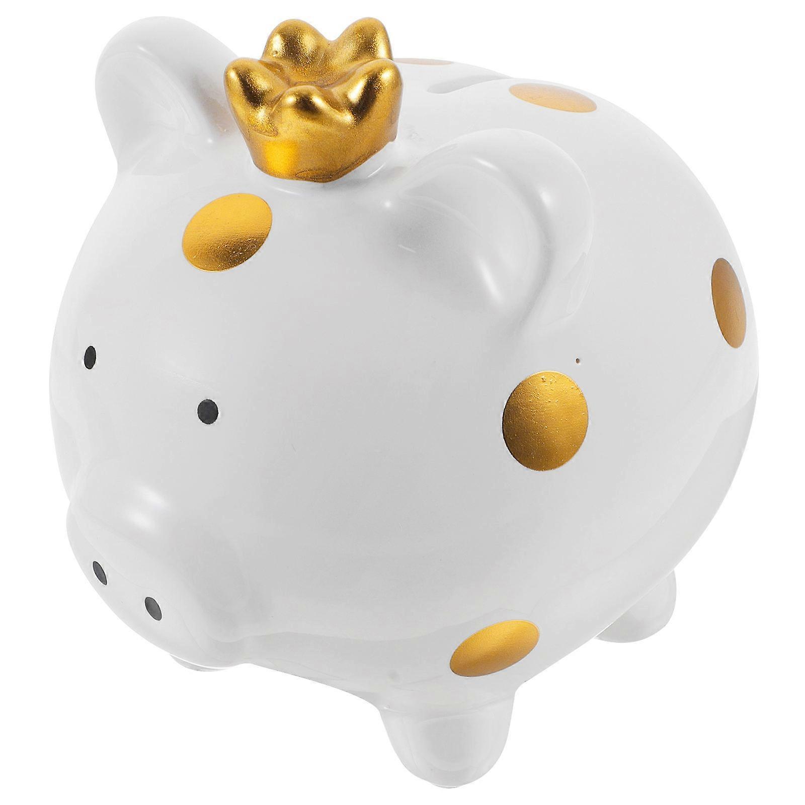 Cartoon Piggy Bank Ceramic Money Saving Container For Children's Room White 1Pack With Removable Rubber Plug