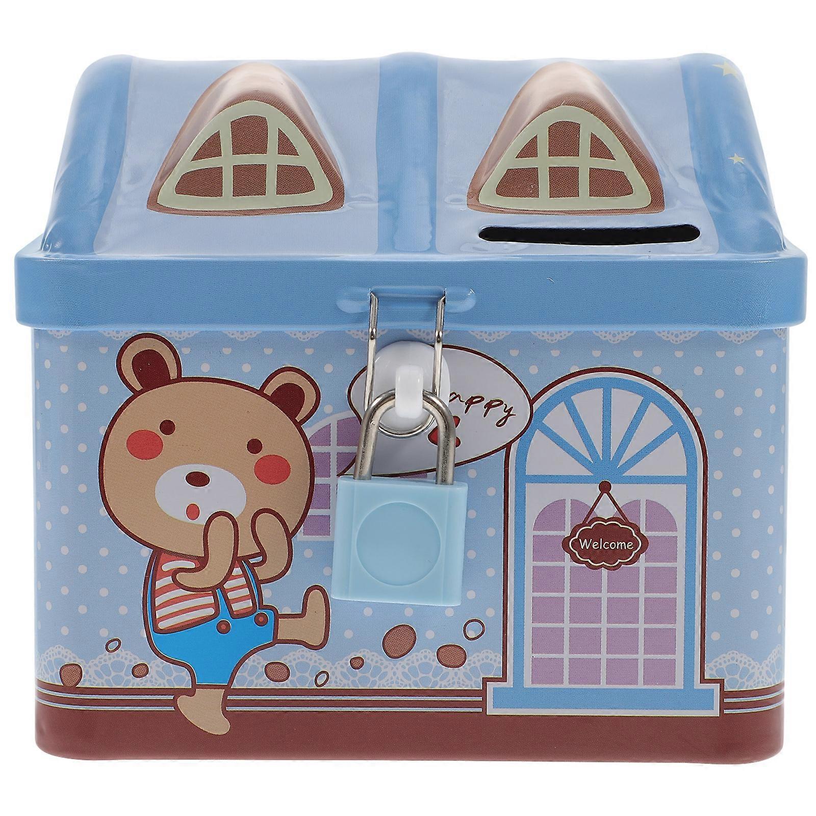 Metal Piggy Bank with Lock Metal Saving Pot Saving Pot Decor Children Gift Blue