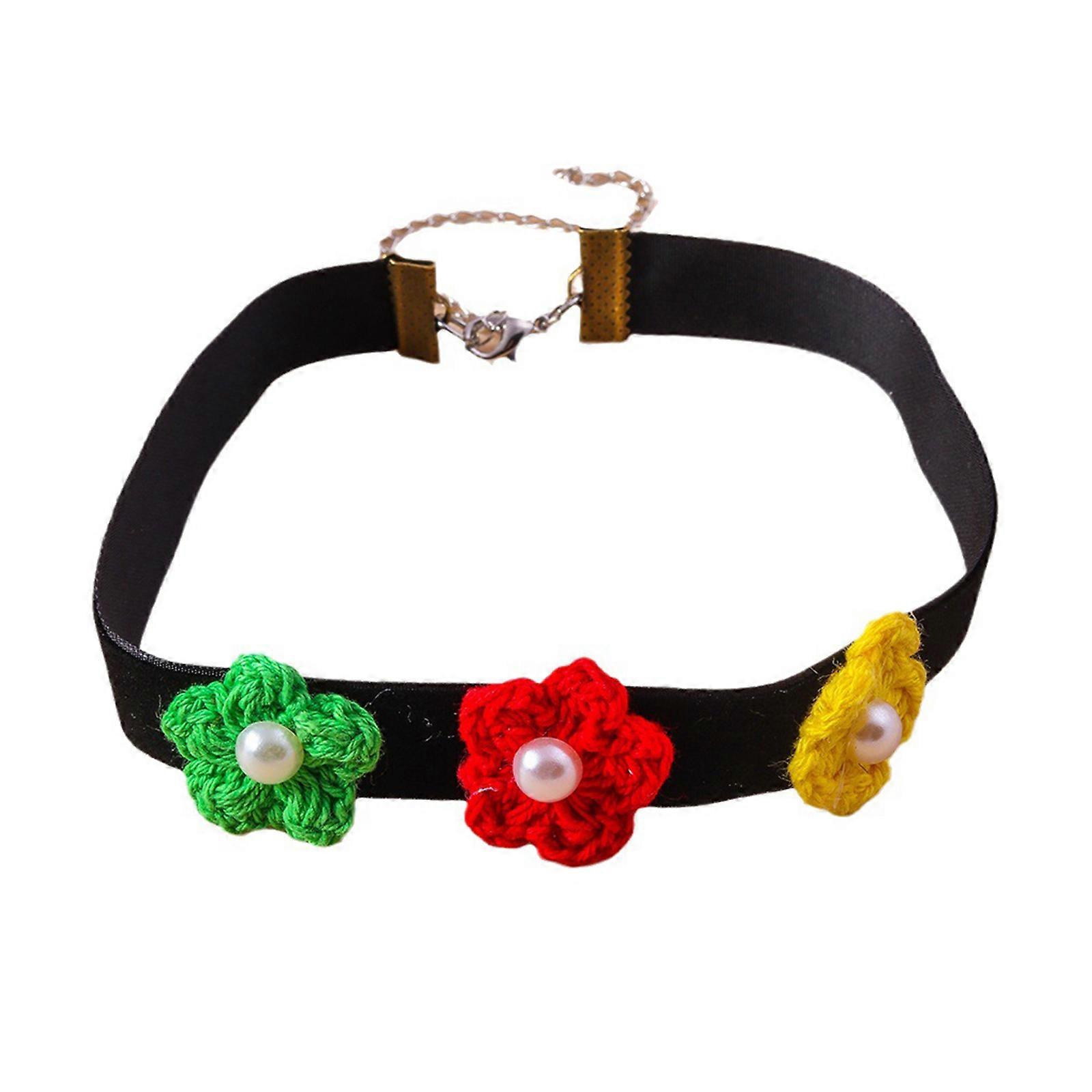 Adjustable Length Choker Necklace with Knitted Flower Pendant, Trendy Floral Charm Neck Chain Fashion Neck Jewelry Gift