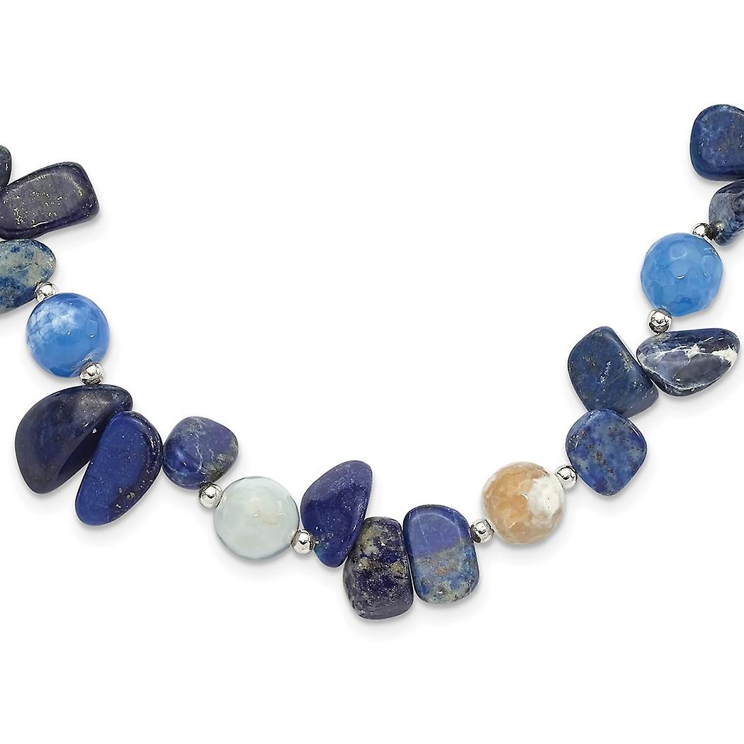 13.5mm 925 Sterling Silver Agate With Shell Lapis and Sodalite W/2inch Extension Necklace 16 Inch Pendant Necklace for W