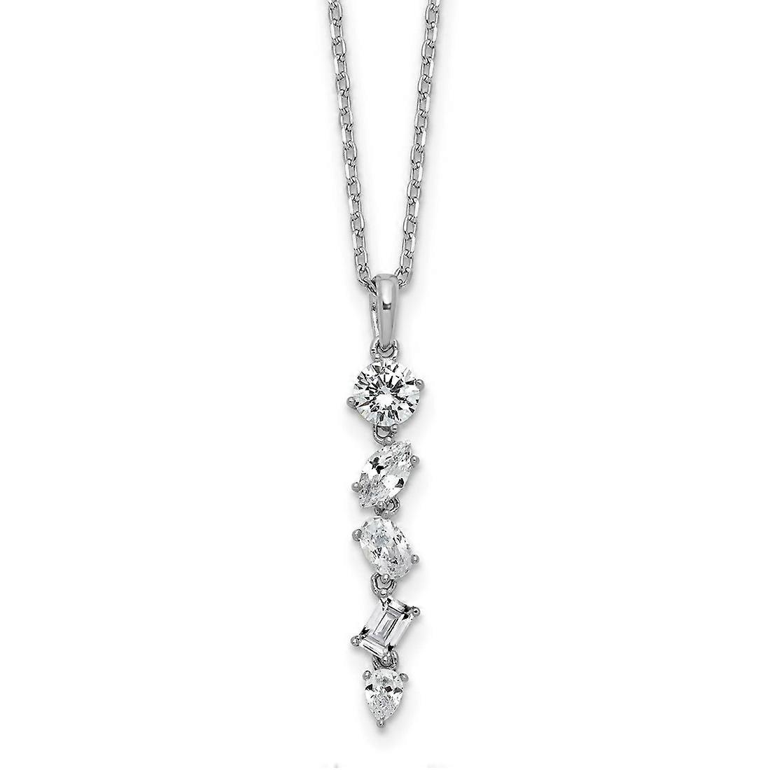 31.25mm 925 Sterling Silver Rhodium Plated Polished Fancy CZ With 2 Inch Extension Necklace 16 Inch Pendant Necklace for