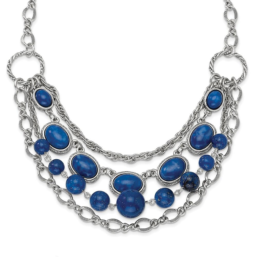 Silver-tone Fancy Lobster Closure Blue Beads 16inch With Ext Necklace Pendant Necklace for Women