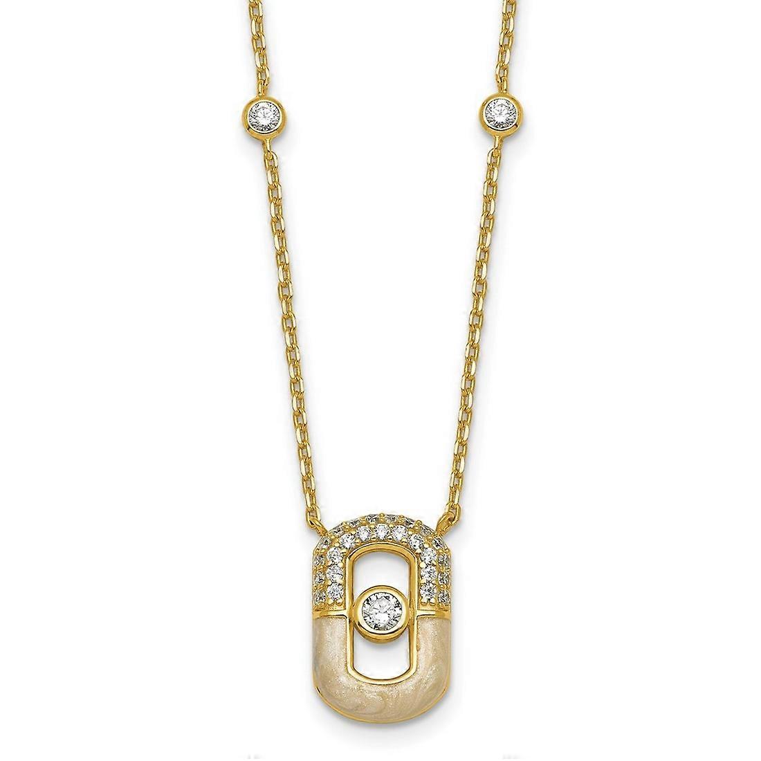925 Sterling Silver Gold-tone Cubic Zirconia Enamel With 1.5in Extension Necklace 16 Inch Pendant Necklace for Women