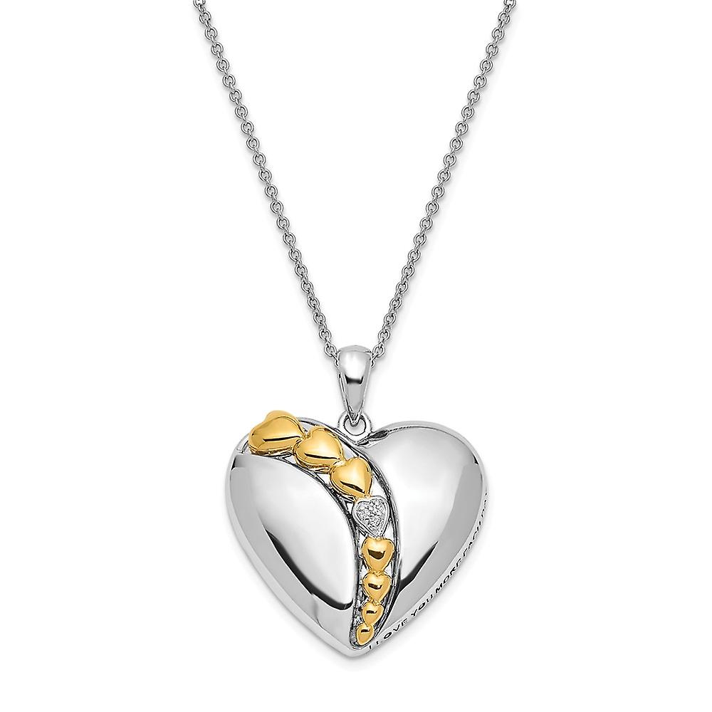 925 Sterling Silver Polished Oxidized Spring-Ring accented gold plating Cubic Zirconia Necklace 18 Inch Pendant Necklace