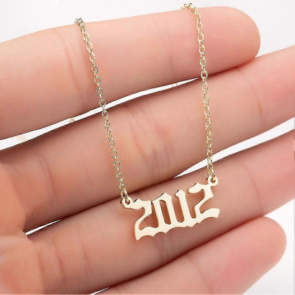Stainless Steel Birth Year Number Pendant Necklace with Chain Jewelry for 1980-2019