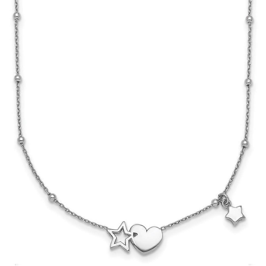 925 Sterling Silver Rhodium Plated Polished Love Heart and Stars With 2in Extension Necklace 16 Inch Pendant Necklace fo