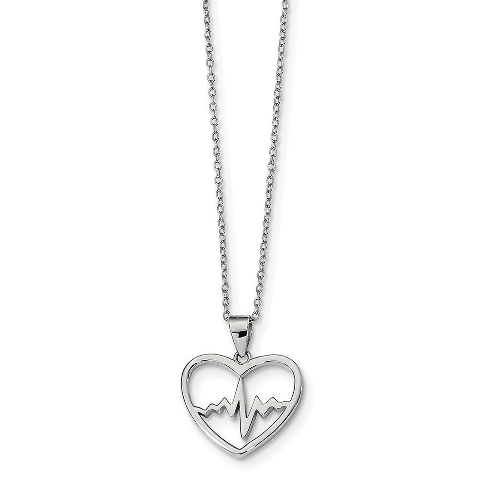 1.13mm 925 Sterling Silver Rhodium Plated Love Heartbeat In Heart With 2 Inch Ext. Necklace 16 Inch Pendant Necklace for