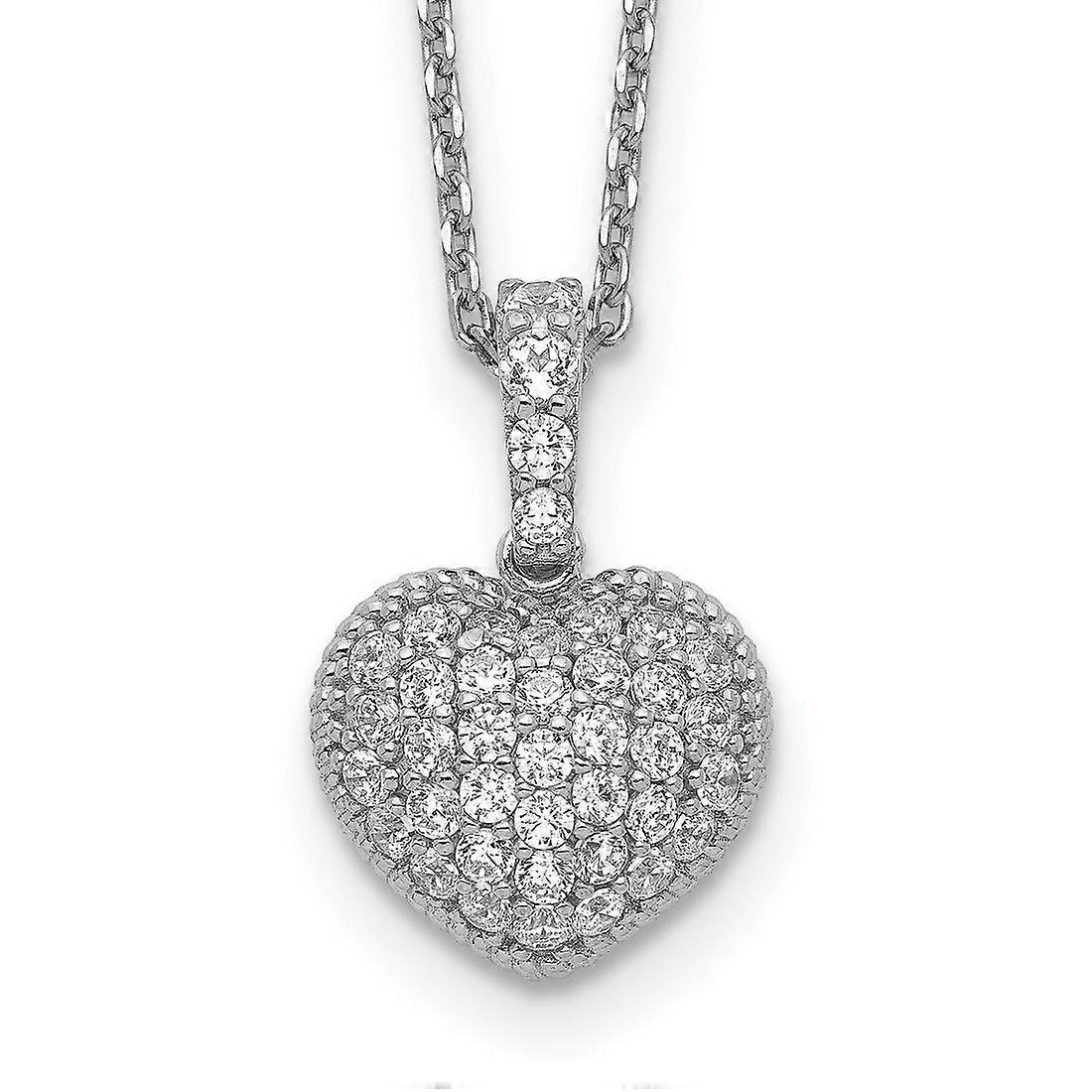 925 Sterling Silver Rhodium Plated Cubic Zirconia Love Heart With 2in Extension Necklace 16 Inch 1mm Wide Pendant Neckla