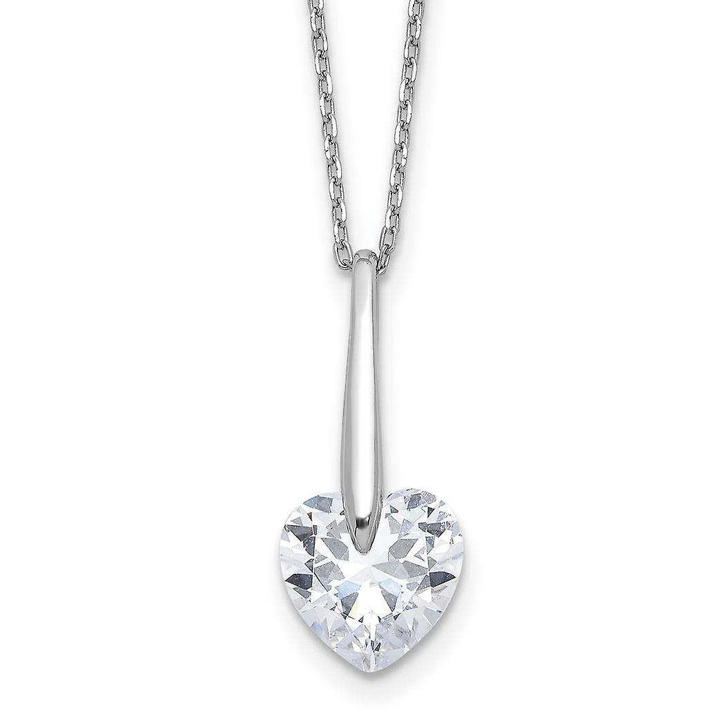 925 Sterling Silver Rhodium Plated Cubic Zirconia Love Heart With 2in Extension Necklace 16 Inch 10mm Wide Pendant Neckl