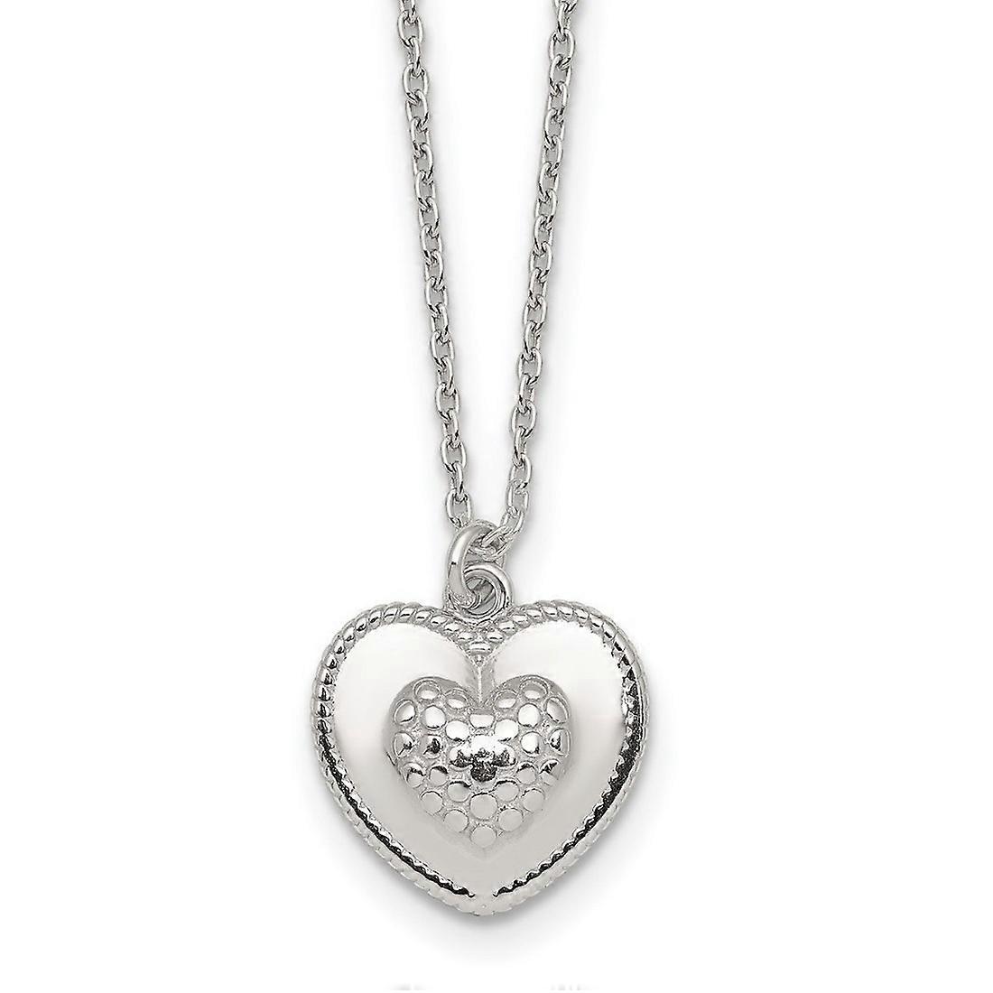 925 Sterling Silver Polished and Textured Love Heart With 2 Inch Extension Necklace 16 Inch Pendant Necklace for Women