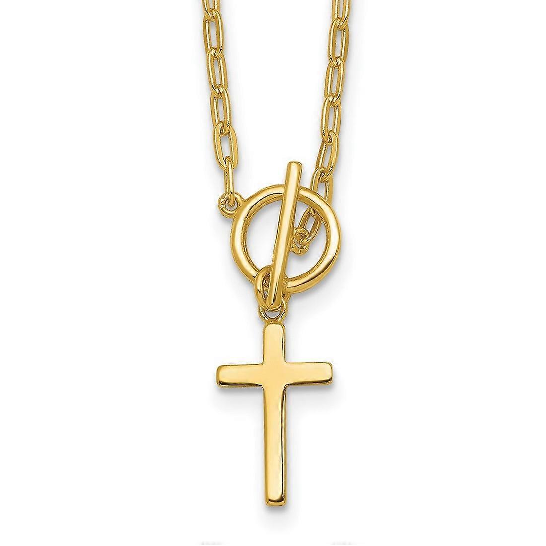 25mm 925 Sterling Silver Gold tone Religious Faith Cross Paperclip Link With 2in Extension Necklace 16 Inch Pendant Neck