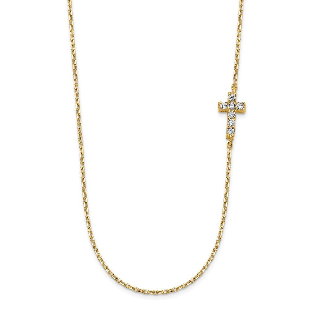 14k Solid Yellow Gold Small Religious Faith Cross Cubic Zirconia With 2inch Ext Necklace 18 Inch 10mm Wide Pendant Neckl