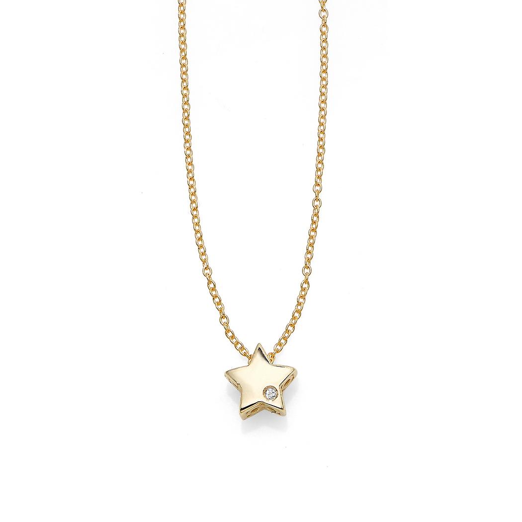 14kk Yellow Gold .005ct Diamond Star Pendant Necklace With Extender 18 Inch Pendant for Women