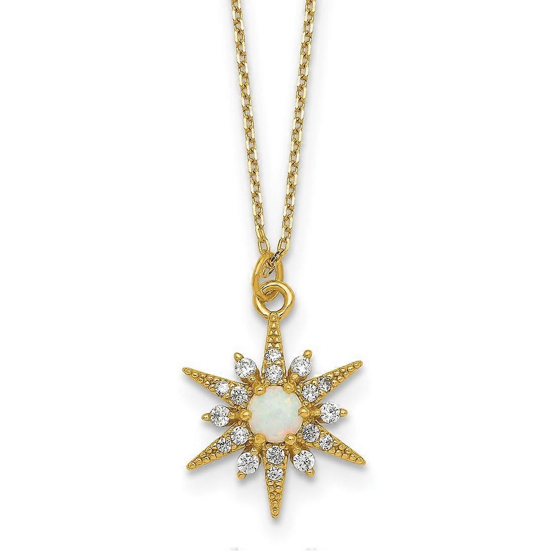 925 Sterling Silver Gold-tone Simulated Opal and CZ Star With 2in Extension Necklace 16 Inch Pendant Necklace for Women