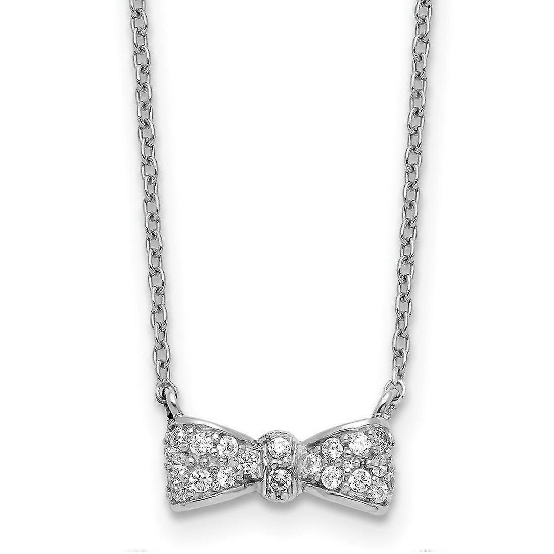 6.4mm 925 Sterling Silver Rhodium Plated Cubic Zirconia Bow With 2in Extension Necklace 16 Inch Pendant Necklace for Wom