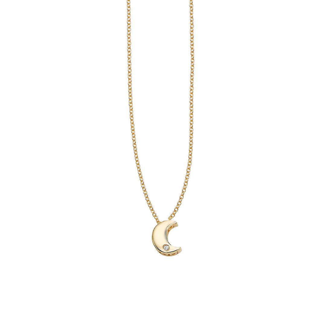 14kk Yellow Gold .005ct Diamond Celestial Moon Pendant Necklace With Extender 18 Inch Pendant for Women
