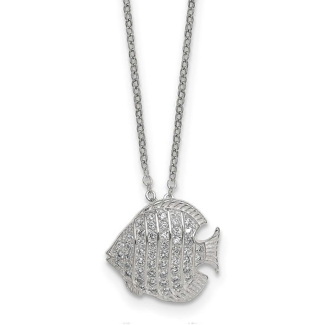 925 Sterling Silver Polished Cubic Zirconia Animal Sealife Fish With 2in Extension Necklace 16 Inch Pendant Necklace for