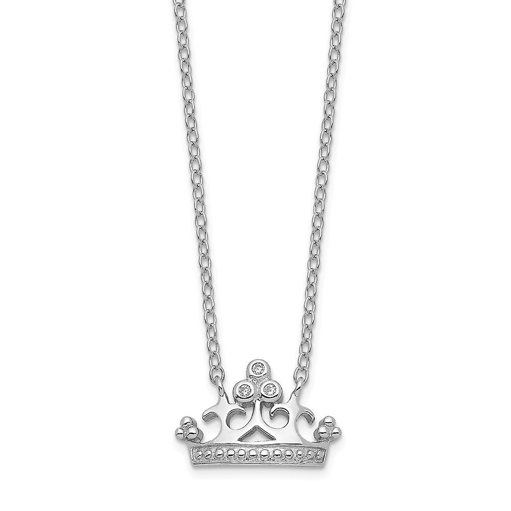 925 Sterling Silver Polished Spring-Ring Cubic Zirconia Crown With 2inch Ext. Necklace 16 Inch 9mm Wide Pendant Necklace