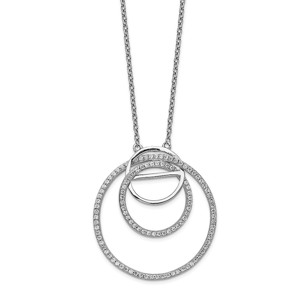 925 Sterling Silver Rhodium Plated Cubic Zirconia Loop Circles With 2 In. Ext. Necklace 16 Inch 27mm Wide Pendant Neckla