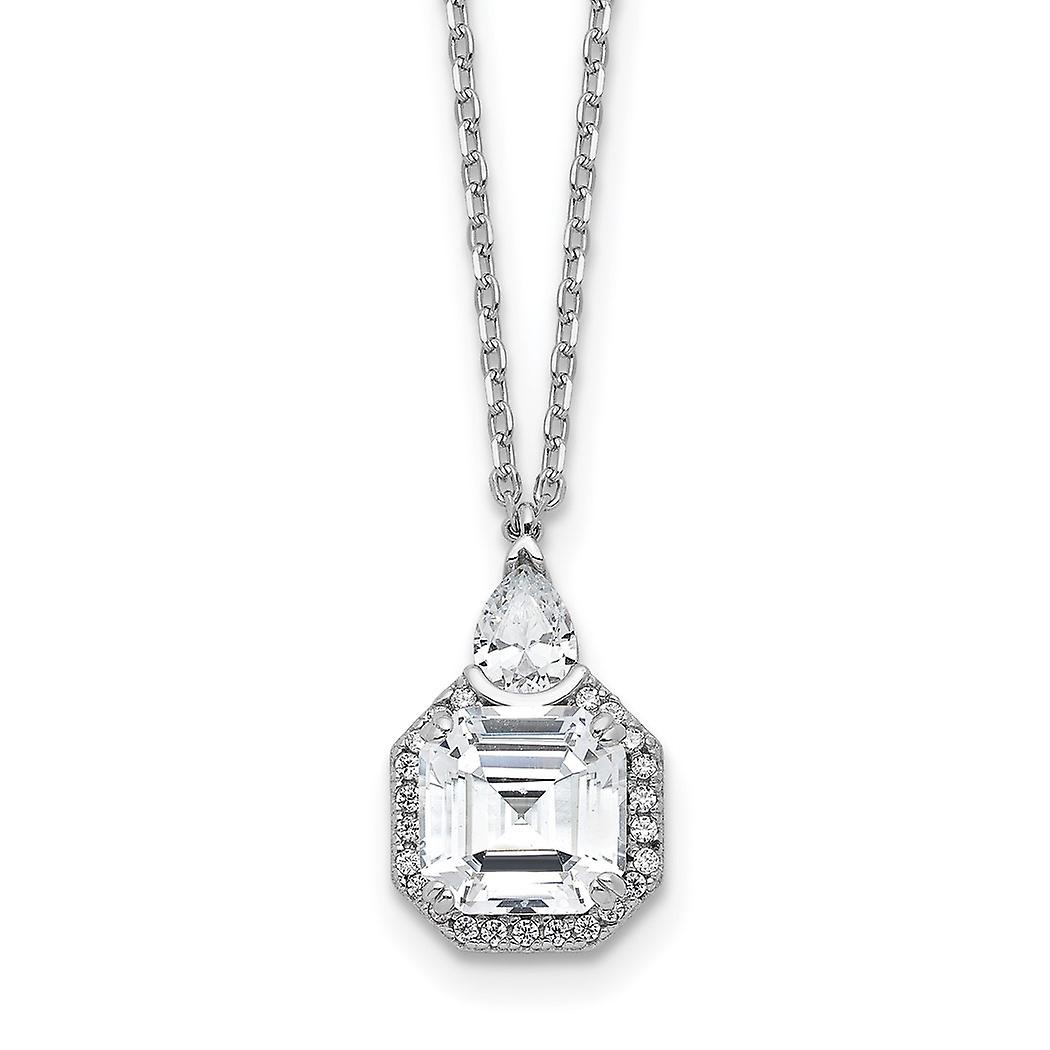 Shimmer 925 Sterling Silver Rhodium Plated CZ 25 Stone With 2 Inch Extender Teardrop Necklace 16 Inch Pendant Necklace f
