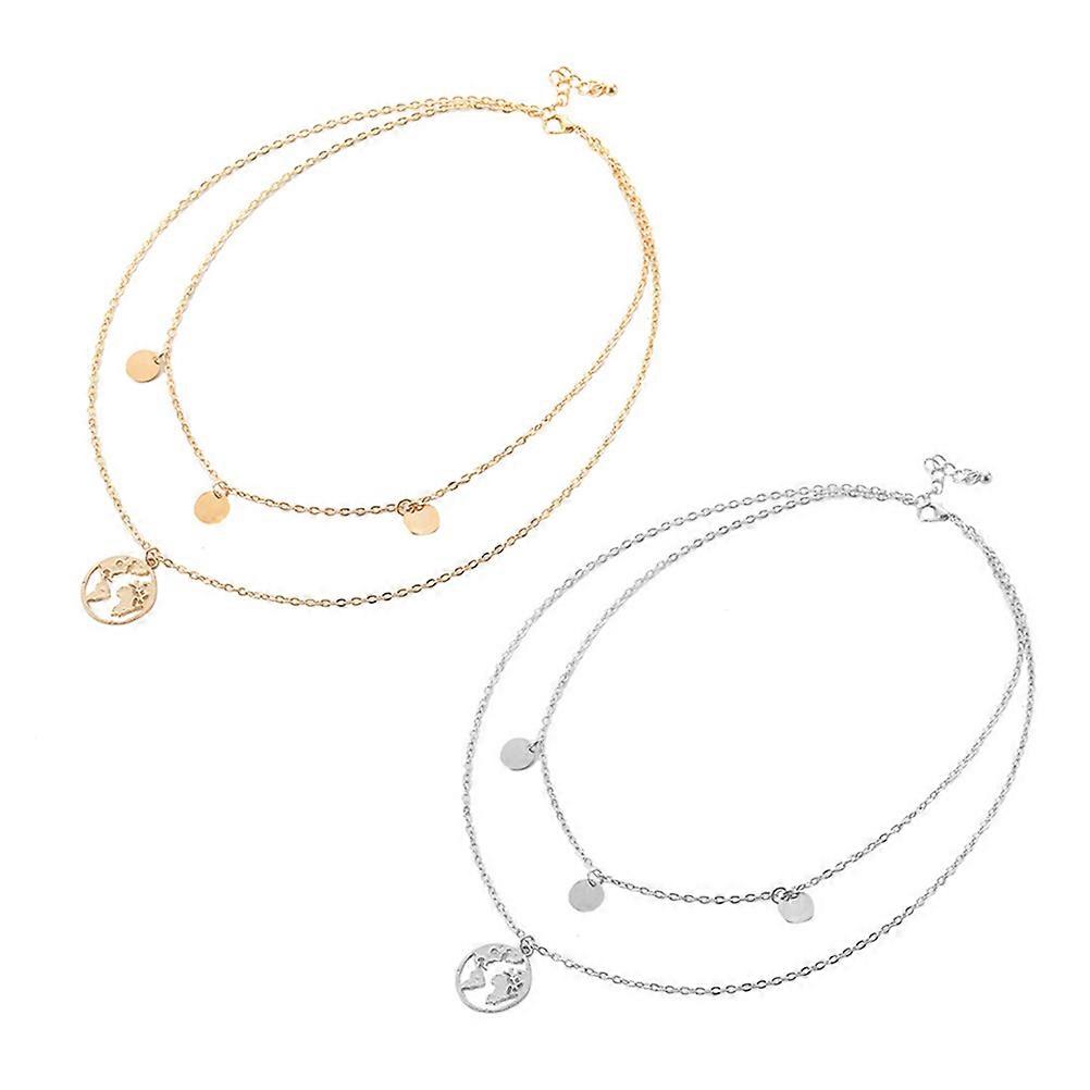 Double-Layer World Map Shaped Pendant Necklace for Women 2Pcs Assorted Color