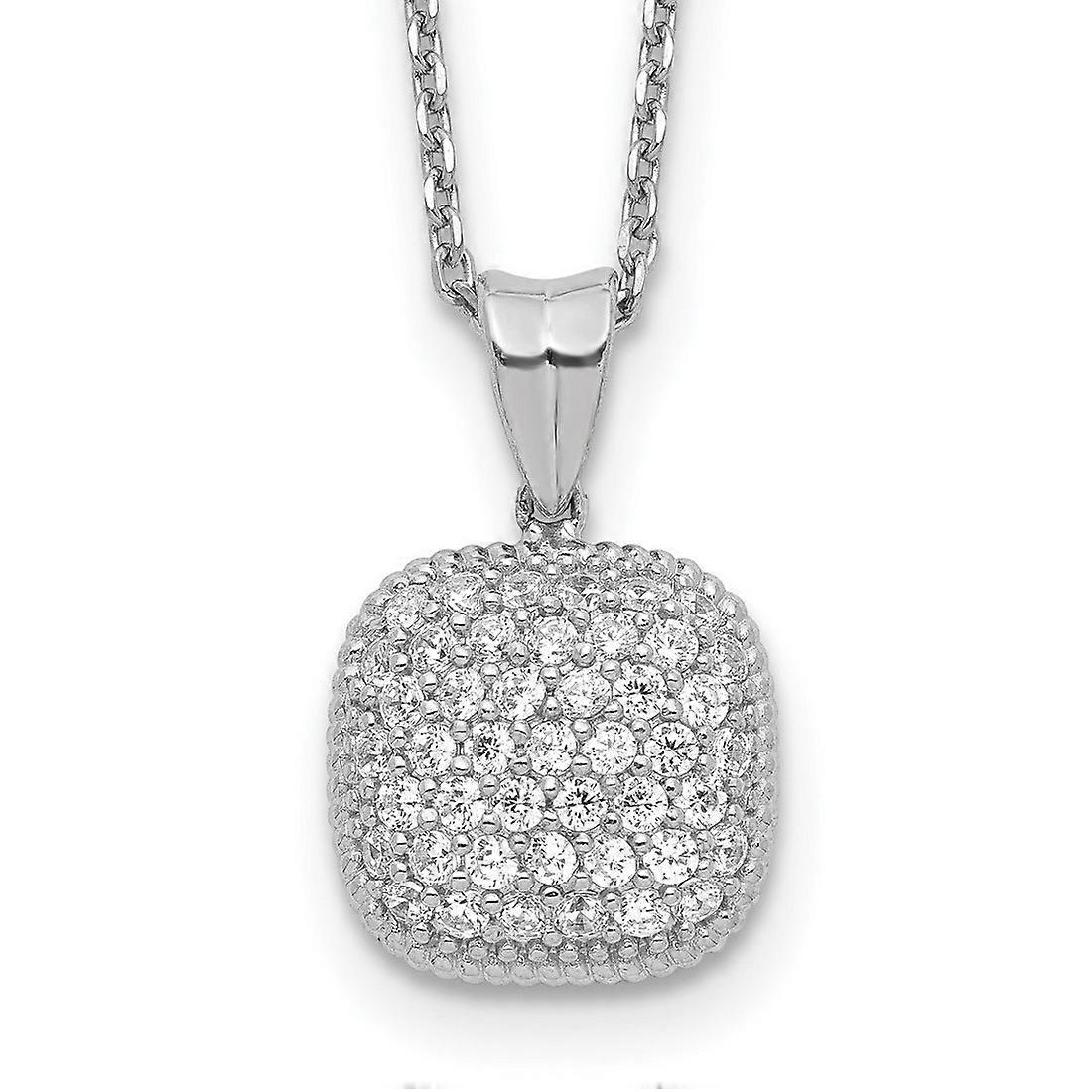 925 Sterling Silver Rhodium Plated Cubic Zirconia Square With 2in Extension Necklace 16 Inch 1mm Wide Pendant Necklace f