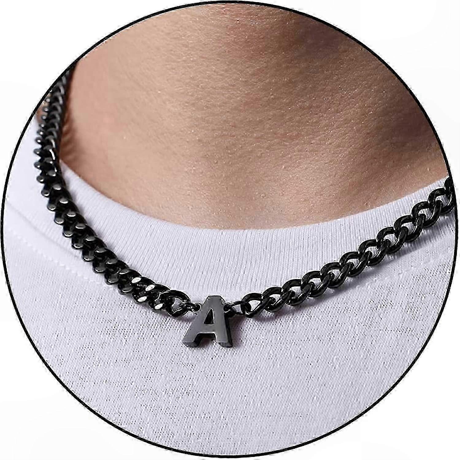 Stainless Steel Cuban Link Necklace with Letter Pendant, 6.5mm, 18+2 Inch Length