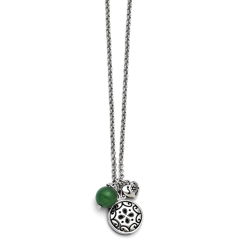 Stainless Steel Polished Fancy Lobster Closure Oxidized With 2inch Extension Simulated Dyed Jade Necklace 20 Inch Pendan