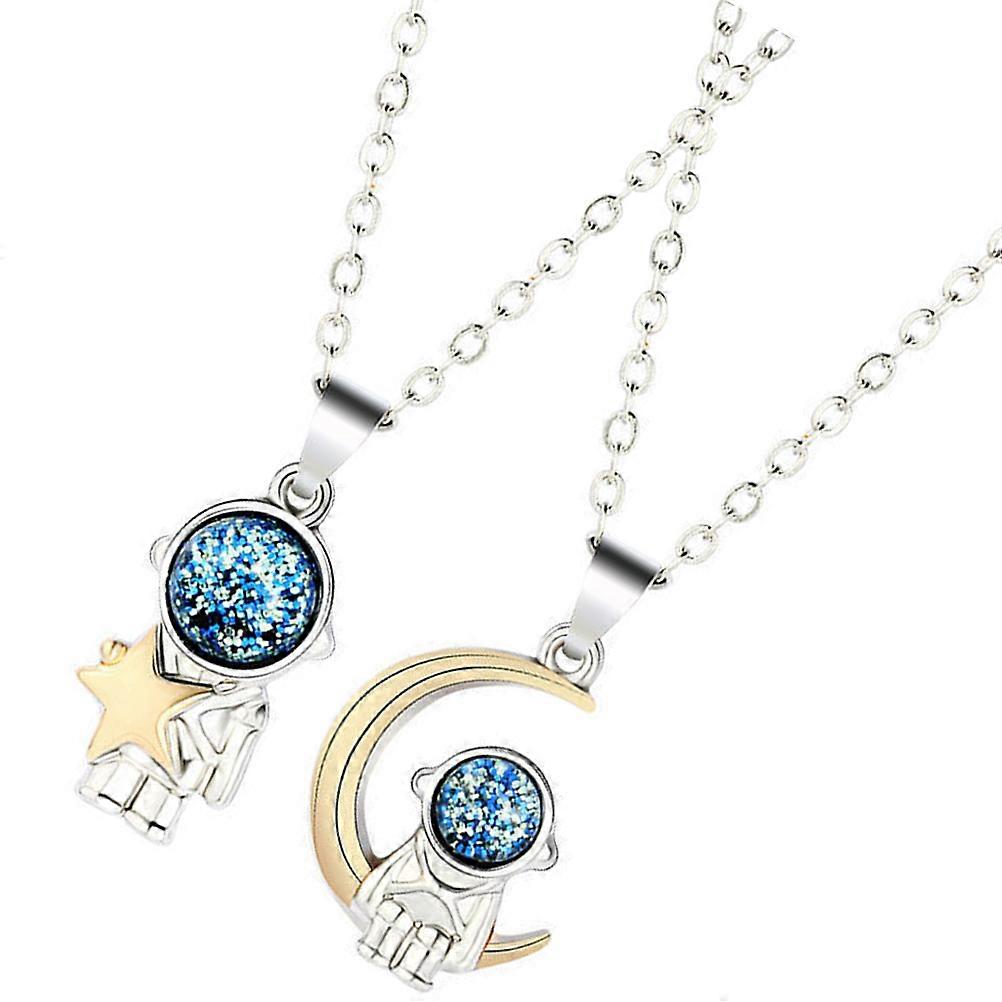 Couples Necklace Moon and Star Pendant with Astronaut Design 3Pairs