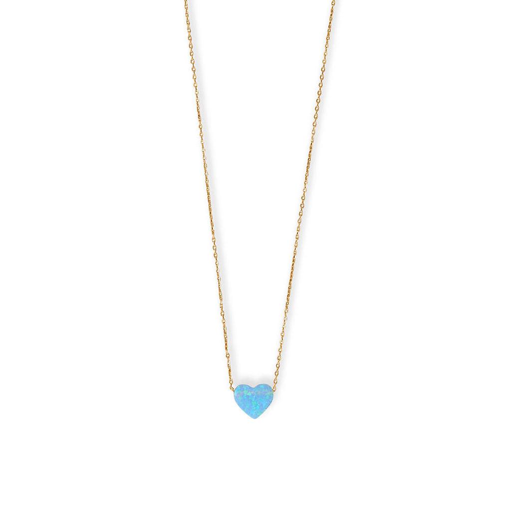 14k Gold Plated 925 Sterling Silver 16 Inch + 2 Inch Simulated Opal Love Heart Necklace 16+2 Inch 9mm X 10mm Blue-Simula