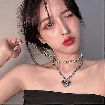 Double Layer Heart Necklace Korean Choker for Women Girls Link Chain Pendant