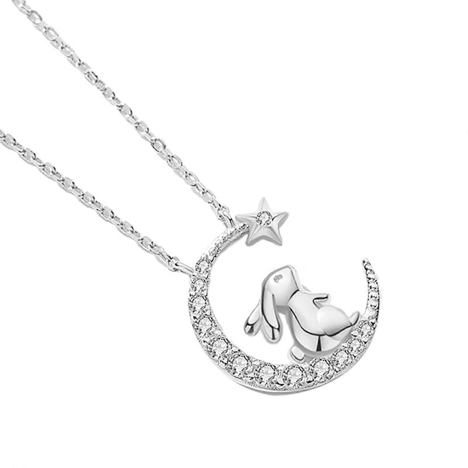Rhinestone Neck Chain Necklace for Women 2Pcs Silver Moon Star Girl Necklaces