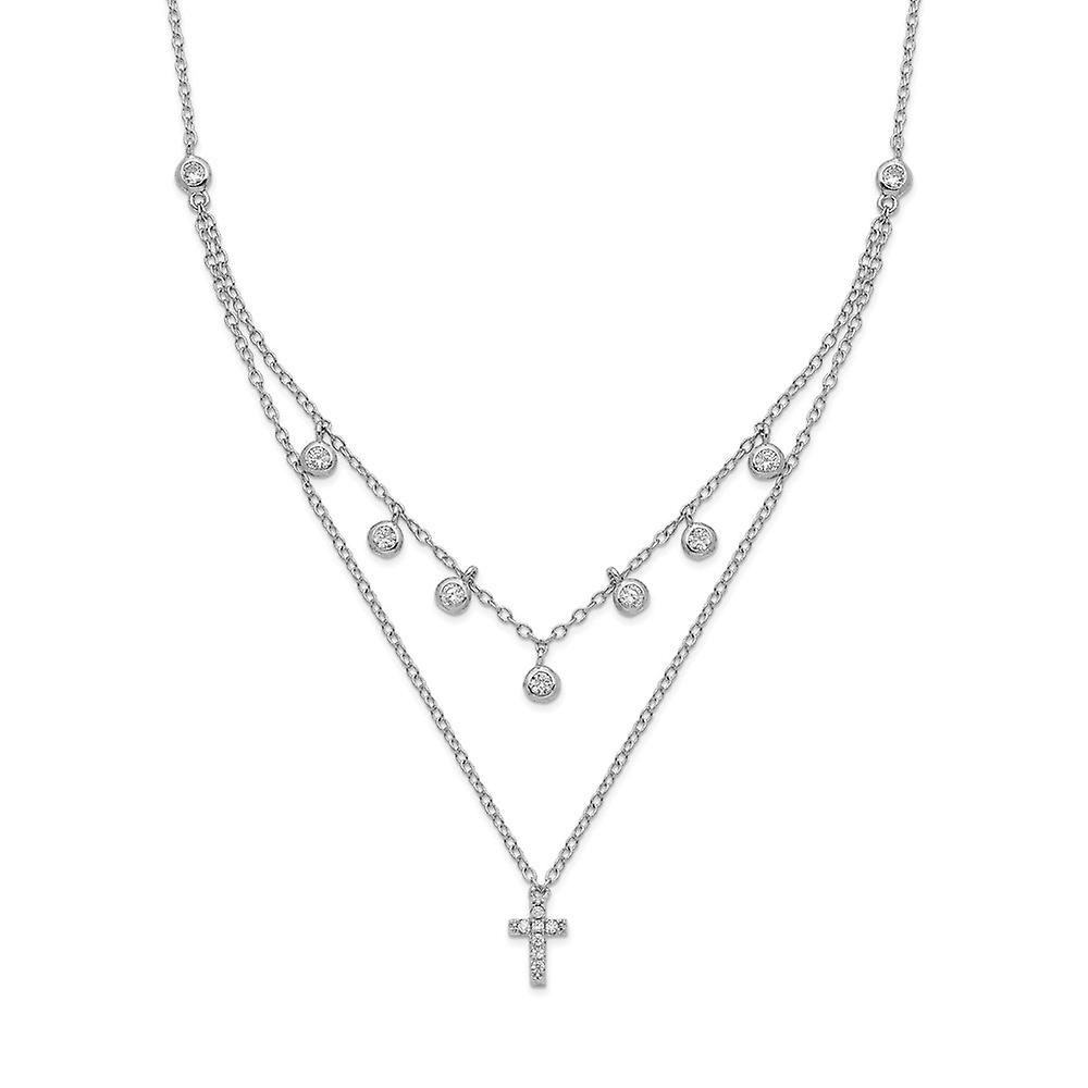 925 Sterling Silver Rhodium Plated Cubic Zirconia Religious Faith Cross With 2inch Ext. Necklace 16 Inch 0.375mm Wide Pe