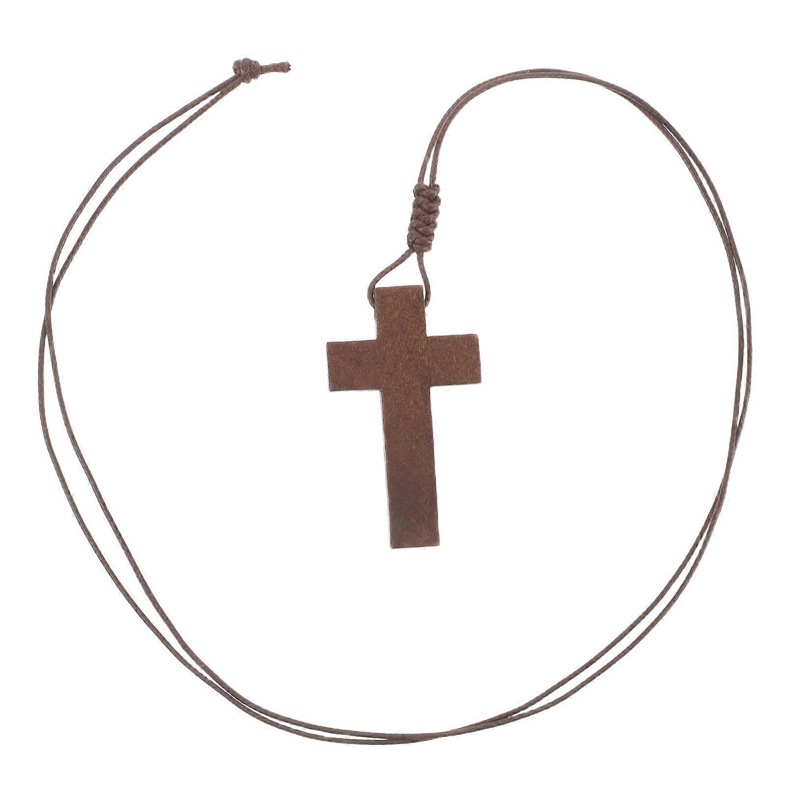 Wood Necklace for Men and Women with Cross Pendant and Adjustable Rope 4Pcs
