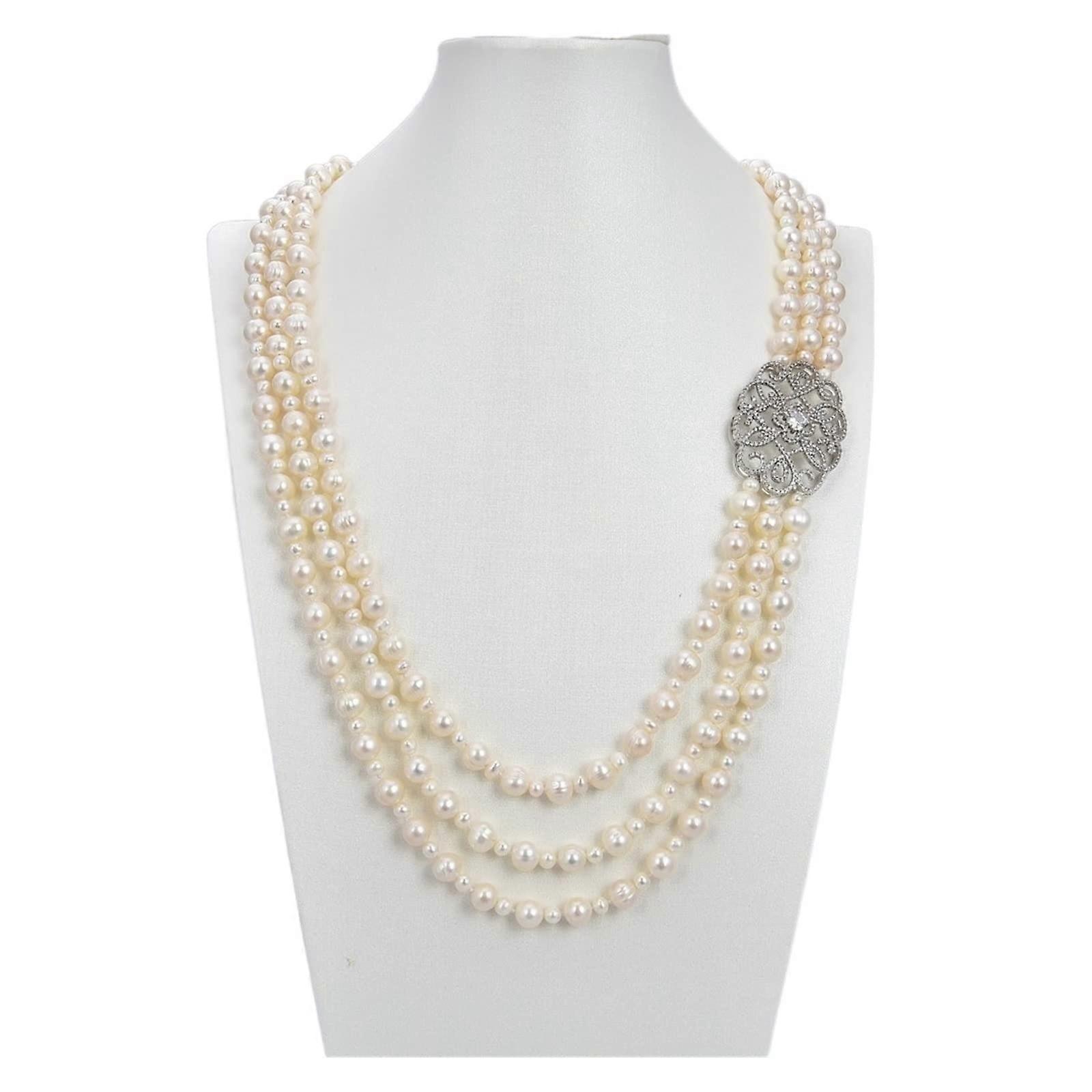 24 Inch 3-Strand White Pearl Necklace Pendant Triple Strand 24in Pearl Necklace