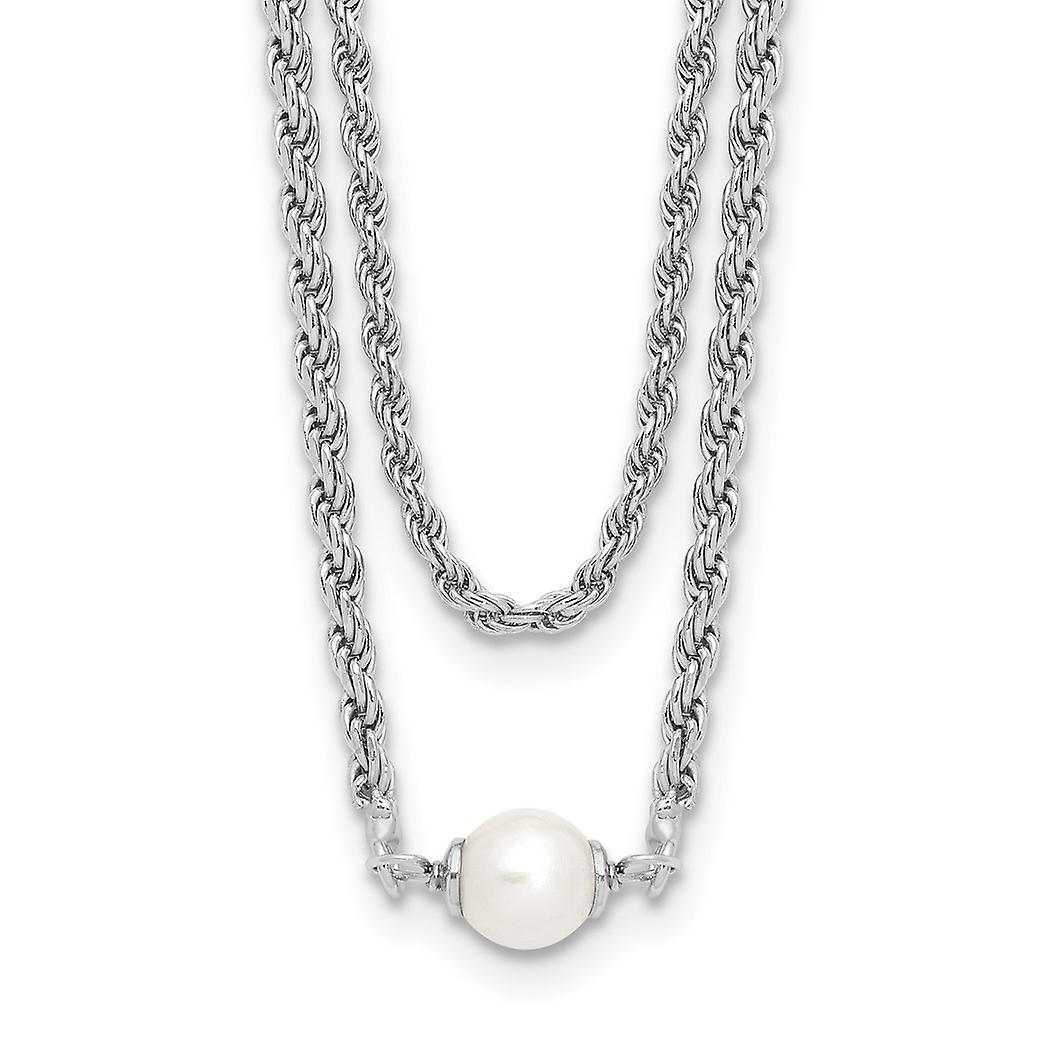 5.44mm 925 Sterling Silver Rhodium Plated Polish 2-strand Fwc Pearl With 2inch Ext. Strand for Women - Length: 7 to 16