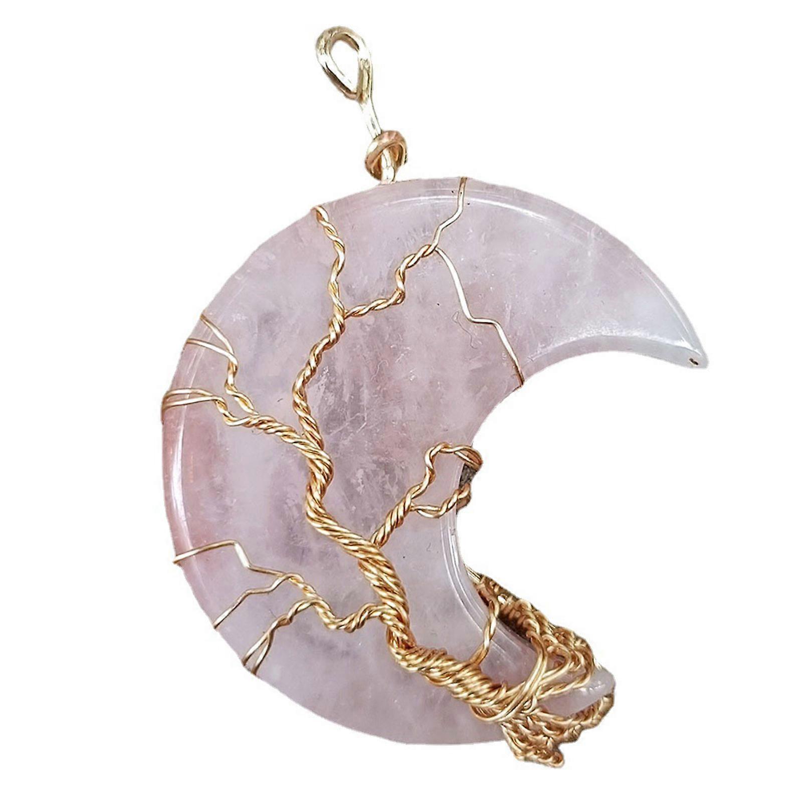 Natural Moon Shaped Crystal Stone Twisted Thread Gemstone Pendant Necklace Accessory for Home Bedroom Office Decoration