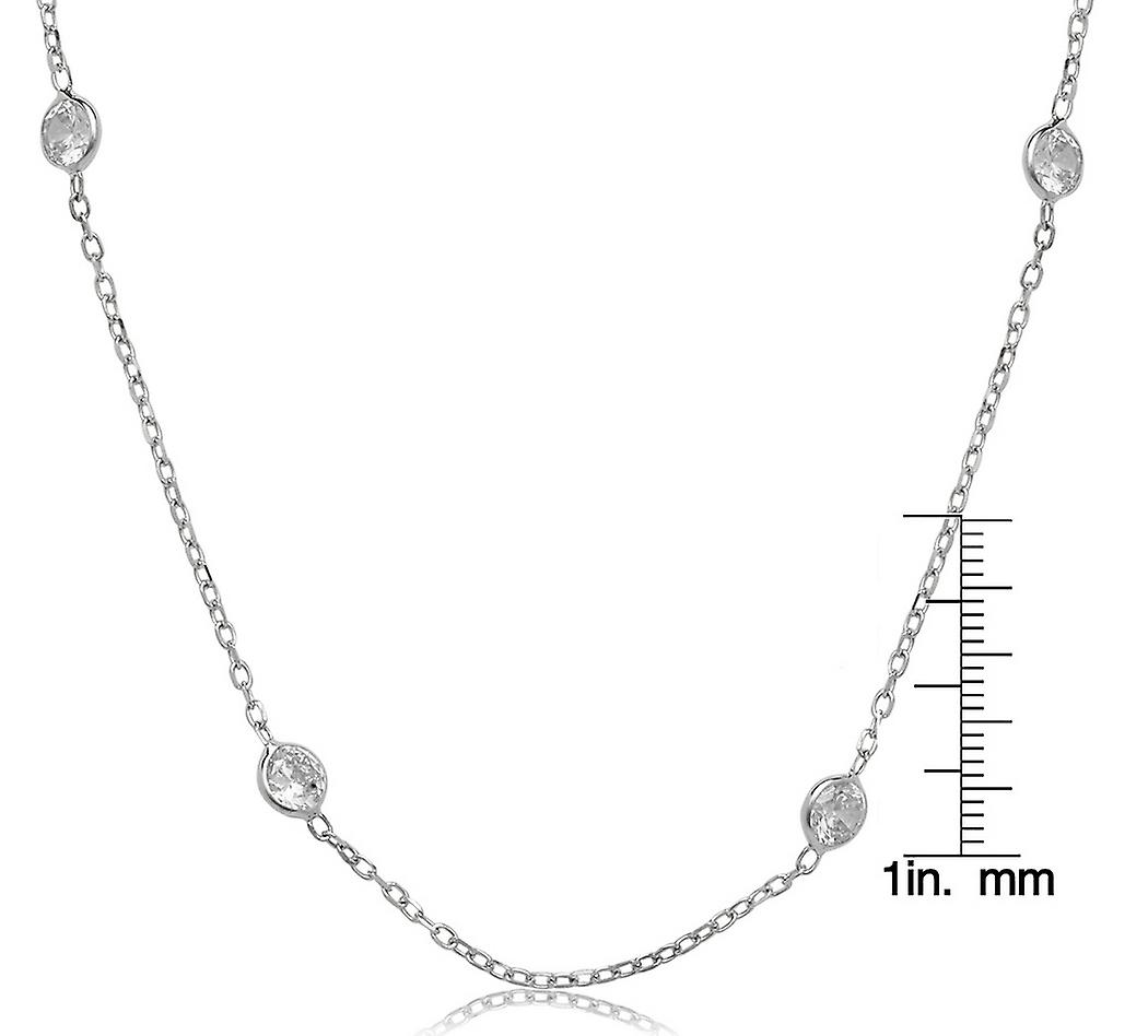 14k White Gold Cubic Zirconia CZ by the Yard Station Necklace (16 inch 18 inch or 20 inch ) Pendant-Necklace for Women